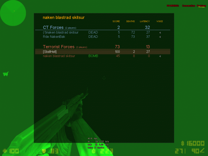 Krax Skrivet 29 december, 2004 Rapportera Share Skrivet 29 december, 2004 (redigerad) ööhm.. jo jag är ju en såndär TÖNT som kör bottar... nej fan det var inte bottar.. det var fy_iceworld2k mot 5 pers och 2 afk men jag är bra! orsaken tilla tt jag bara klipper ut är för att jag itne pallar formatera filerna HAHAHAH din jävla loser man ser klart o tydligt att du har hax.. du använder furious.. man ser radarn.. idiot.. han raderade bilderna.. här är den ena Redigerad 30 december, 2004 av Krax Citera Länk till kommentar Dela på andra sidor More sharing options...