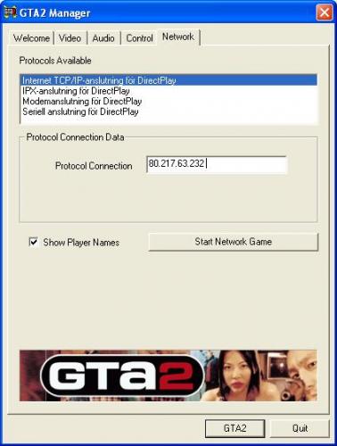 MetoC7 Skrivet 14 januari, 2005 Rapportera Share Skrivet 14 januari, 2005 (redigerad) Men jag är dålig på sånt! Hur Joinar jag? Ska jag trycka på GTA Manager och start online game? Först klickar du på iconen, sen klickar du på network, om du vill ansluta skriver du in ipn i protocol spalten. "joina" 80.217.63.232 Redigerad 14 januari, 2005 av MetoC7 Citera Länk till kommentar Dela på andra sidor More sharing options...