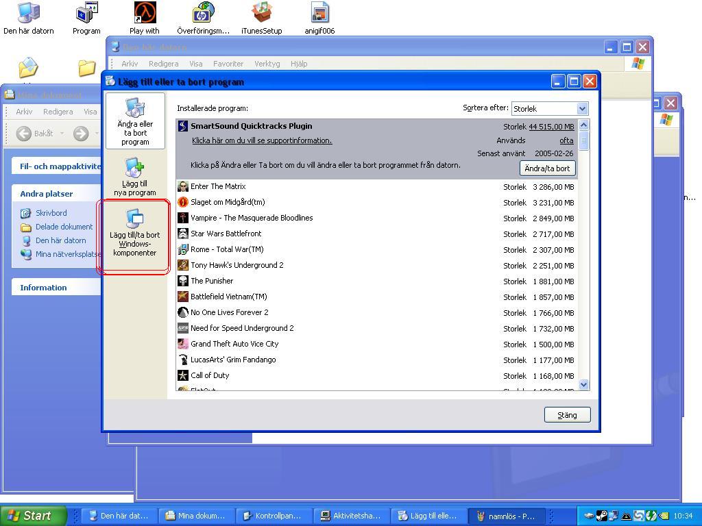 P-C Skrivet 6 mars, 2005 Rapportera Share Skrivet 6 mars, 2005 Gå in på kontrollpanelen --> Lägg till/ ta bort program Sen till vänster på rutan kommer upp väljer du Lägg till/ Ta bort Windows-komponenter sen klicka dig fram till den där förbannade internet expolrer screen om du inte förstår Citera Länk till kommentar Dela på andra sidor More sharing options...