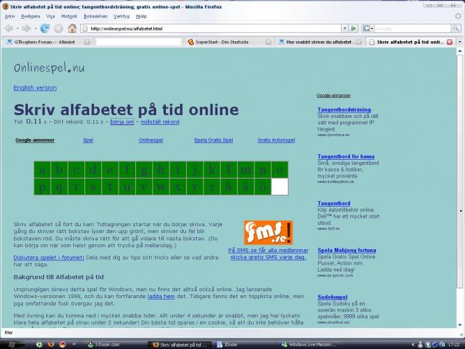 AngryAxel Skrivet 8 februari, 2007 Rapportera Share Skrivet 8 februari, 2007 Fick under tre sekunder på Finger Frenzy, som är ett liknande spel, men Flashbaserat, och utan "ÅÄÖ". Går aningen snabbare att starta om spelet, också. Citera Länk till kommentar Dela på andra sidor More sharing options...