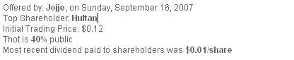 Jojje Skrivet 16 september, 2007 Rapportera Share Skrivet 16 september, 2007 Hittade en länk till ThotMarket på ett forum jag går till. What is ThotMarket? ThotMarket.com is a social bookmarking website that provides links to interesting and useful content on the web. The links featured on ThotMarket have all been submitted by our users much like many other websites like Digg.com and Reddit.com. ThotMarket is a little different than those sites, however, in the way that these links are ranked. On this site, users buy and sell shares in these links very much like how investors trade shares of companies on the regular stock market. Links on the site are ranked by their trading price, with the more valuable links ranked higher. Wait a minute. Are people actually investing real money in this market? No. ThotMarket is a virtual stock market, meaning that no actual money is involved. Users are actually just trading credits within the system. Läs mer... Allt man gör är att skriva in sitt namn, password och e-mail så är man redo att köpa. Man får $100 när man först registrerar sig. Länk till sidan Har också gjort en GTAsajten Thot. Skynda på och köp innan det stiger i pris! http://www.thotmarket.com/images/ticker/GTASAJTEN.png Citera Länk till kommentar Dela på andra sidor More sharing options...