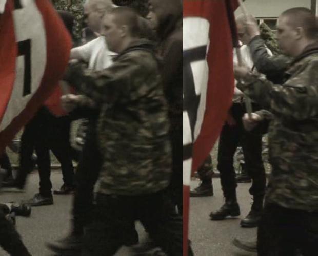 01:13:40 ser man mig första gången hållandes i en flagga till höger. Sen 01:14:33