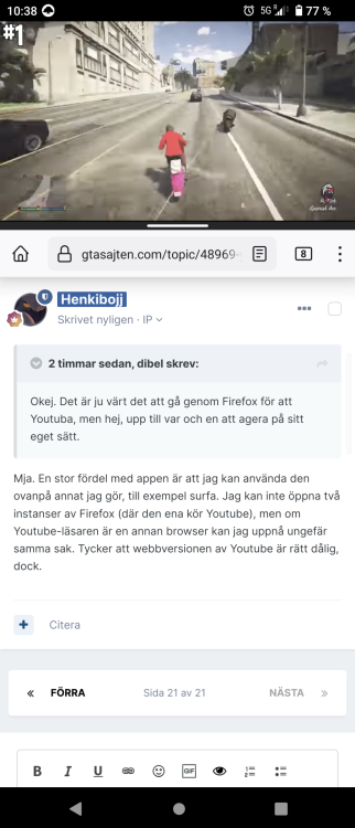 dibel Skrivet 25 november, 2023 Rapportera Share Skrivet 25 november, 2023 8 timmar sedan, Henkibojj skrev: Mja. En stor fördel med appen är att jag kan använda den ovanpå annat jag gör, till exempel surfa. Jag kan inte öppna två instanser av Firefox (där den ena kör Youtube), men om Youtube-läsaren är en annan browser kan jag uppnå ungefär samma sak. Tycker att webbversionen av Youtube är rätt dålig, dock. Jag förstår. Jag provade själv att köra en Youtubeflik och sedan surfa på en annan, men då pausades videon så ser vad du menar. Antar att tredjepartsapp med inbyggd adblock är rätt väg att gå då. Citera Länk till kommentar Dela på andra sidor More sharing options...